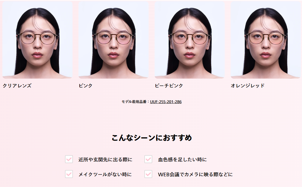 そこから生まれたのが、チークカラー®レンズ。レンズにほんのり血色を加えて、目元を明るく見せるという発想でした。