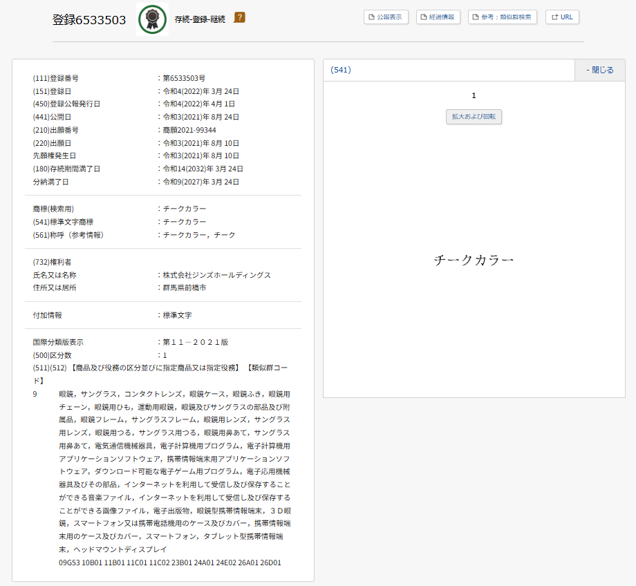 でもその時には、JINSは「チークカラー」の名称について商標出願を行っていました。