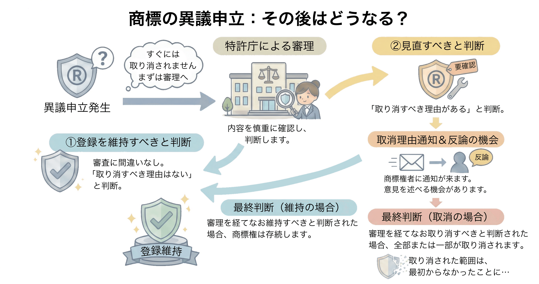 せっかく登録されたのに、なぜそんな期間があるのでしょうか。 「登録をひっくり返して、あなたを困らせるため」ではありません。本来の目的は、審査の間違いを正し、公平性を保つことにあります。